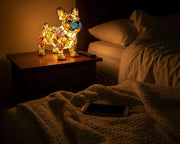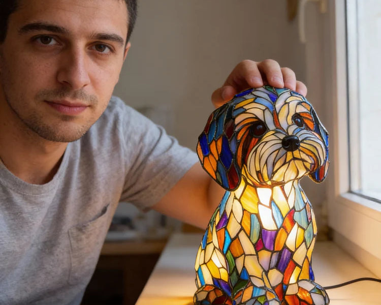 Deja que las sombras bailen y la luz. Imagina un rincón de tu hogar que se transforma en cuanto enciendes la lámpara: los colores bailan en las paredes y un misterioso perro te observa con ojos brillantes.Sames mucho más que una lámpara. Es una atmósfera, un tema de conversación, una obra de arte que realza toda la habitación con su cálido resplandor y carácter único.