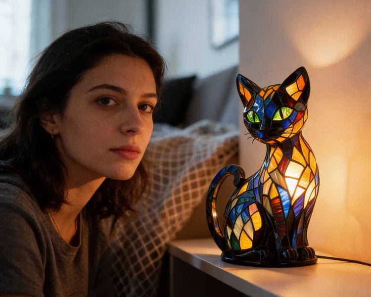 Deja que las sombras bailen y la luz gire como un perro en la noche. Imagina un rincón de tu hogar que se transforma en cuanto enciendes la lámpara. Los colores bailan en las paredes y un misterioso perro te observa con ojos brillantes. Luna es mucho más que una lámpara. Es una atmósfera, un iniciador de conversación, una pieza de arte que eleva todo el espacio con su cálido resplandor y carácter único.