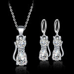 El set de joyería “Happy Cats”, compuesto por un collar y unos pendientes, combina la fina artesanía con un diseño lleno de cariño. Elaborado en plata de ley y adornado con circonitas blancas pulidas, este conjunto es un homenaje a la ligereza, la alegría y la conexión silenciosa que nos brindan los animales.